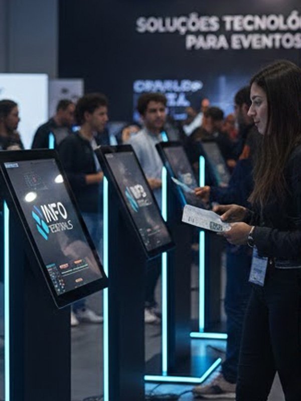 A locação inclui o fornecimento do totem touchscreen 43”, entrega no local, instalação, testes e retirada após o evento. O equipamento é configurado de acordo com o tipo de uso e o objetivo do evento.