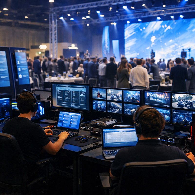 Oferecemos soluções completas para credenciamento, workshops e e-sports. Com o nosso aluguel de equipamentos de informática, você conta com totens touchscreen 43″, notebooks Windows e Mac e desktops gamer com RTX, todos gerenciados via rede Wi-Fi 6, garantindo performance, conectividade e uma experiência impecável para todos os participantes do evento.